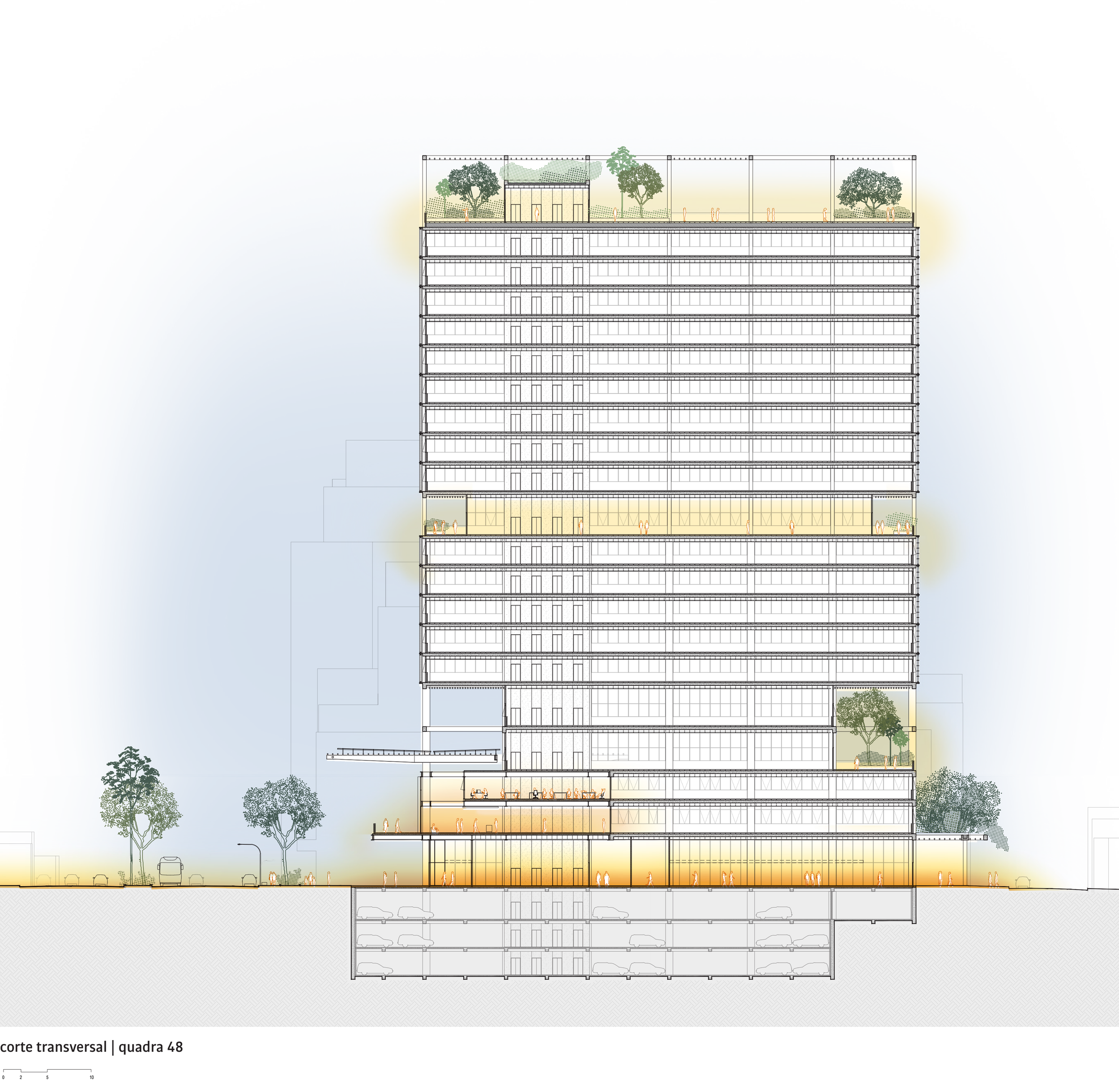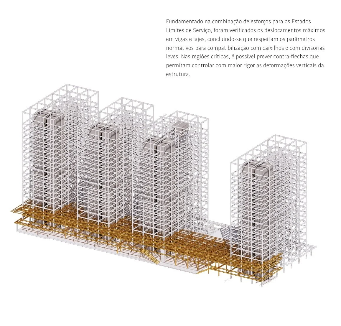 Projeto premiado em concurso para a nova sede do Governo do Estado. Praça de Atendimento elevada, integrada ao serviço público e administrativo, promovendo flexibilidade e adaptabilidade ao longo do tempo. A estrutura em aço organiza fluxos e une torres, destacando-se na paisagem. O modelo de cálculo tridimensional foi desenvolvido pelo método dos elementos finitos. Garante segurança, conformidade normativa e compatibilidade com caixilhos e divisórias leves.