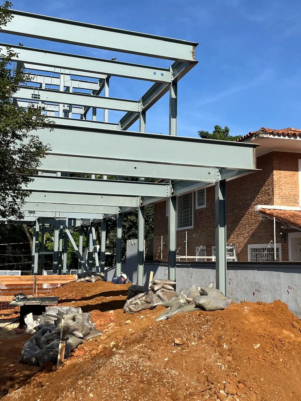 Residência com fundações em estacas hélice contínua, lajes steel deck e estrutura metálica mista, com pórticos a cada 2,7 m vencendo vãos de 7,4 m. O sistema hidráulico utiliza aquecimento solar e reuso de águas pluviais para limpeza e irrigação. O projeto de climatização adota unidades de expansão direta e soluções personalizadas para conforto térmico. SPA e área técnica possuem sistemas independentes, otimizando o desempenho geral da construção.